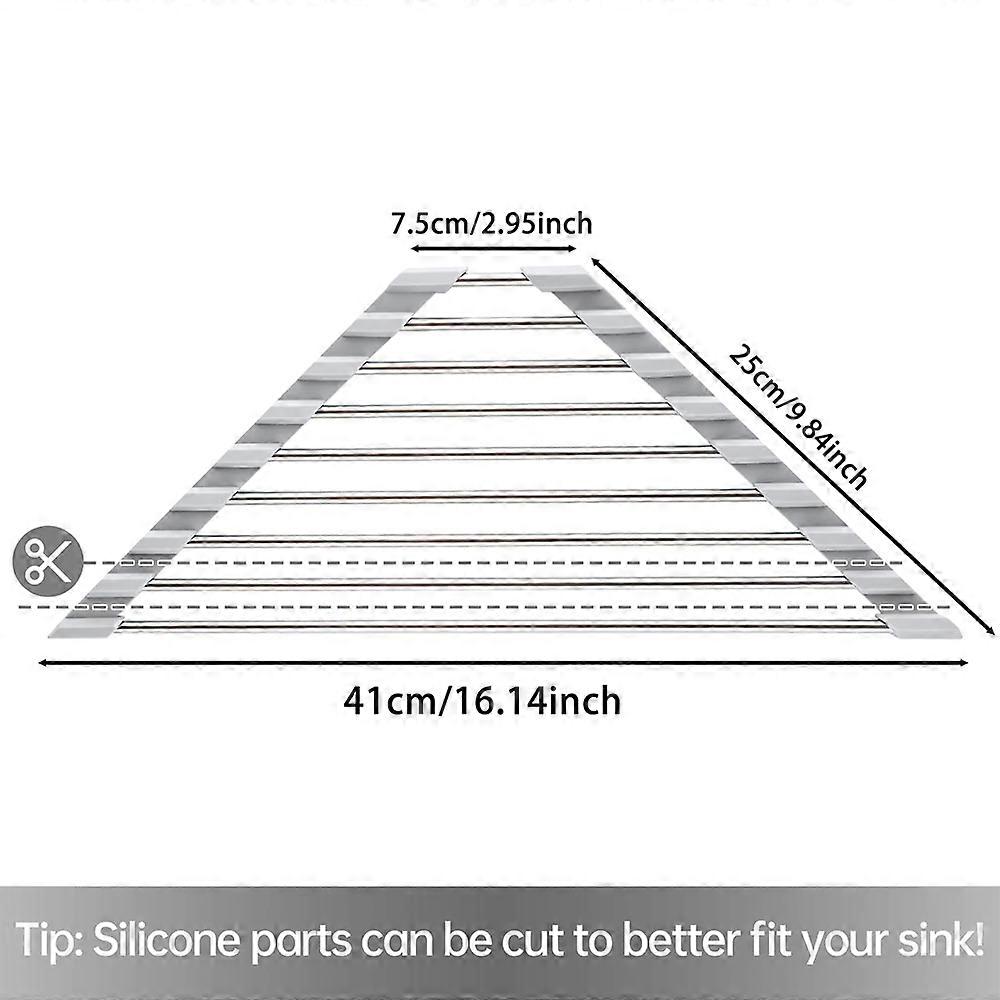Roll Up Triangle Dish Drying Rack Kitchen Sink Organizer Kitchen Drainer Sink Corners Multi-Functional Organizer with Drainage