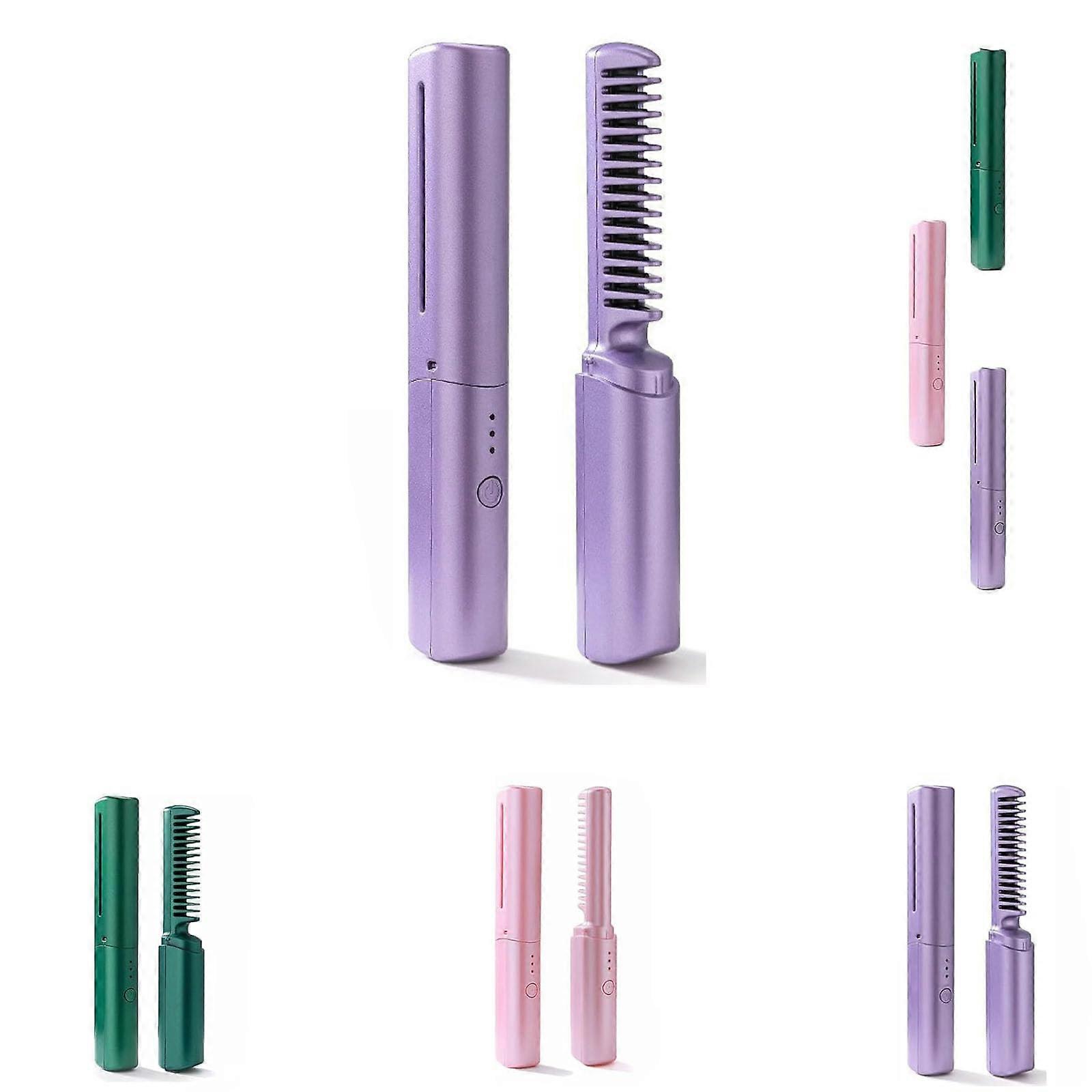 Cordless Rechargeable 2 in 1 Ceramic Hair Straightening Comb with Three Heat Settings Purple
