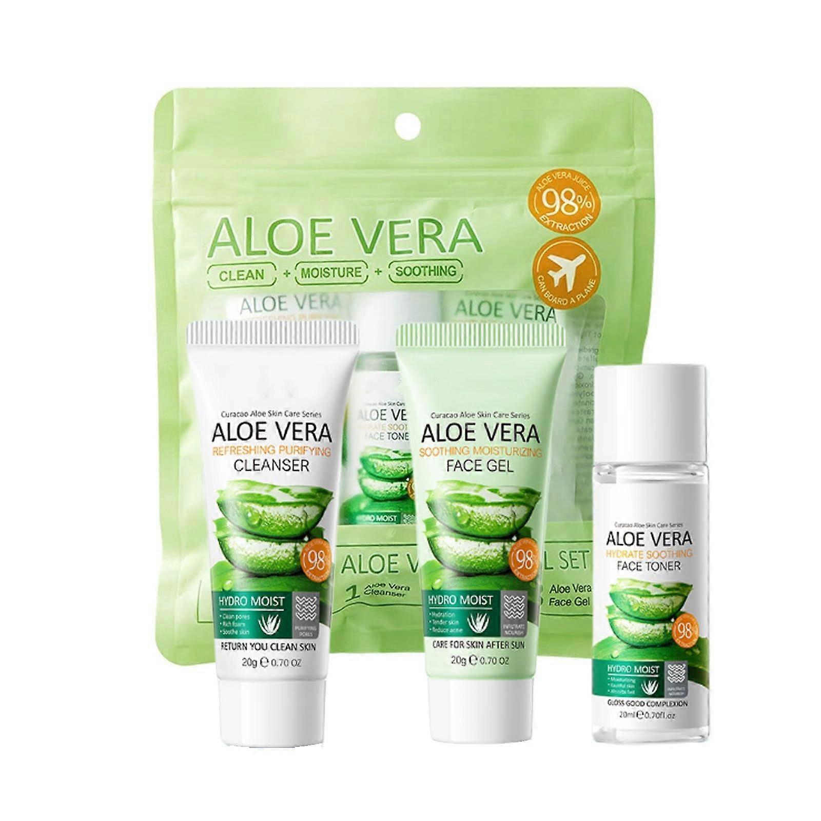Travel Size Skincare Set with Aloe Vera Cleanser Gel Toner, 3 Piece Deep Hydration Face Kit for Women