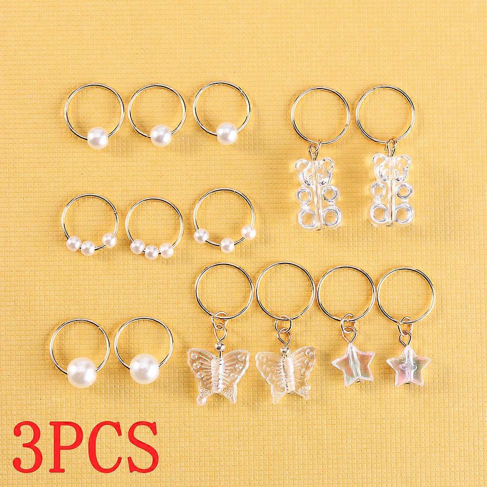 14pcs/Pack Pink Pearl Star Bear and Butterfly Shape Hair Braid Rings Hair Ties Kids Hair Accessories for Girls Headwear