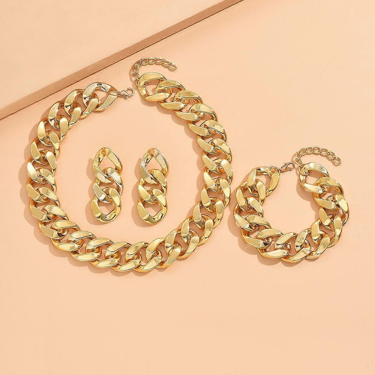 4pcs Exaggerated Vintage Thick Edge Cuban Gothic Earrings Necklace For Women Gold Color Chain Necklaces Charm Party Jewelry set