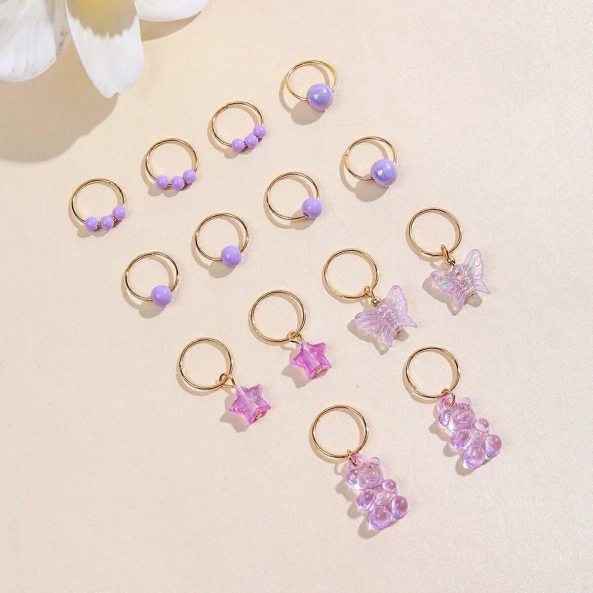 14pcs/Pack Pink Pearl Star Bear and Butterfly Shape Hair Braid Rings Hair Ties Kids Hair Accessories for Girls Headwear