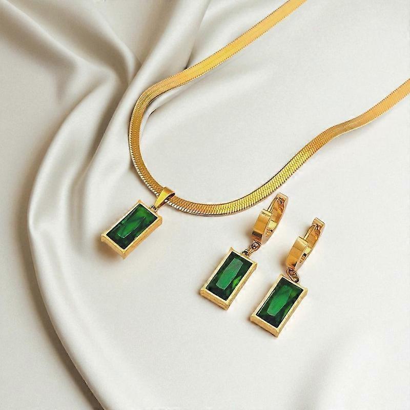 3pcs Stainless Steel New Square Green Crystal Zircon Necklace Earrings for Women Girl New Fashion Non-fading Jewelry Sets