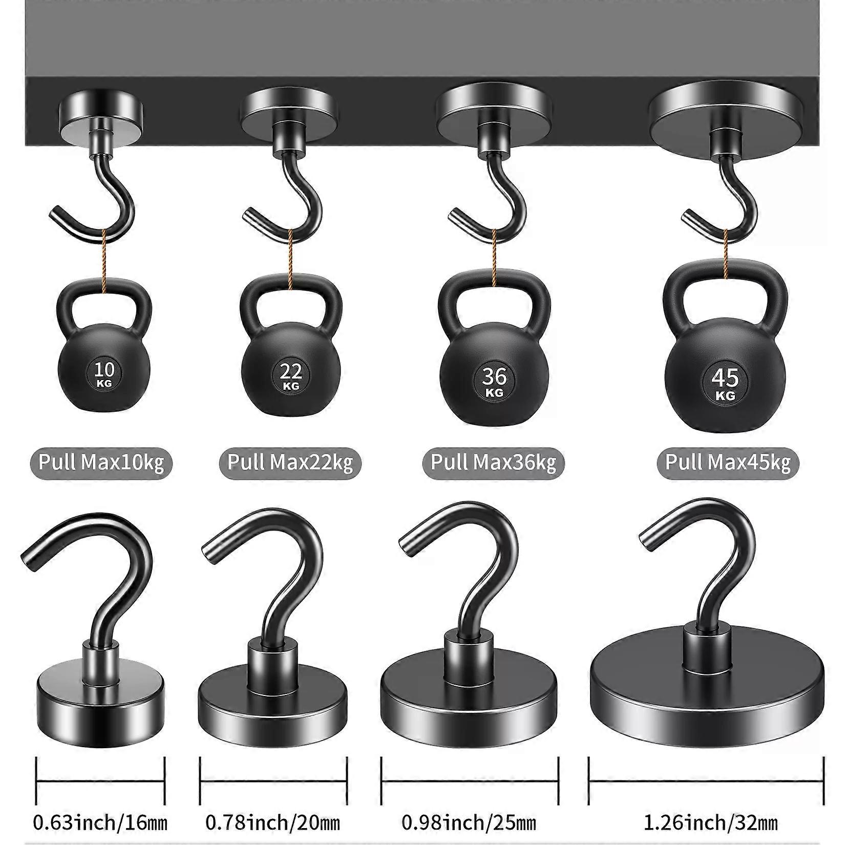 Magnetic Hooks Heavy Duty for Hanging, Magnet with Hooks for Home, Kitchen, Workplace, Office (Black, Pack of 4/6/8/12)