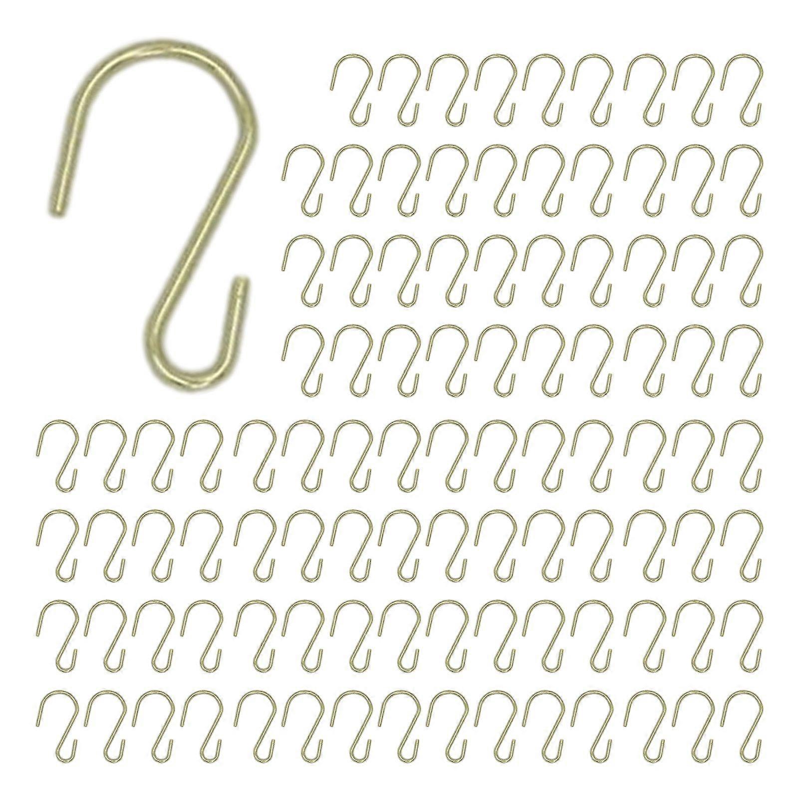 Description: These premium gold S-shaped hooks offer versatile and convenient hanging solutions for your home or workspace. Crafted from high-quality metal with a durable golden coating, they resist rust and corrosion, maintaining their elegant shine even in humid conditions. Each hook measures 2.6cm long with adjustable openings—one end wider for easy hanging on shelves or poles, the other narrower for secure fixing without bending or damage. Despite their compact size, these sturdy hooks support up to 1kg (2.2 lbs), perfect for organizing kitchen utensils, mugs, lightweight cookware, clothes, tools, or holiday decorations. With 100 hooks included, maximize vertical space effortlessly and keep your environment neat and clutter-free. Ideal for kitchens, bathrooms, closets, garages, or outdoor decor, these S-hooks combine strength, style, and practicality in one smart design. Item Name: Hooks Material: Metal Features: Convenient, Heavy Duty, Wide Application Size Details: Length: 2.6cm/1.02" (Approx.) Notes: The quantity is about 100pcs, due to manual calculation, the quantity might has 1-5pcs more or less, hope you can understand, thank you. Due to the light and screen setting difference, the item's color may be slightly different from the pictures. Please allow slight dimension difference due to different manual measurement. Package Includes: 100 x Hooks