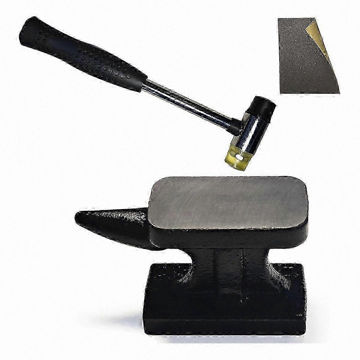 Forged Iron Anvil and Rubber Hammer Kit, 1.15 Lb Mini Horn Anvil Set for Metalworking, Jewelry Crafting, and Silversmith Projects