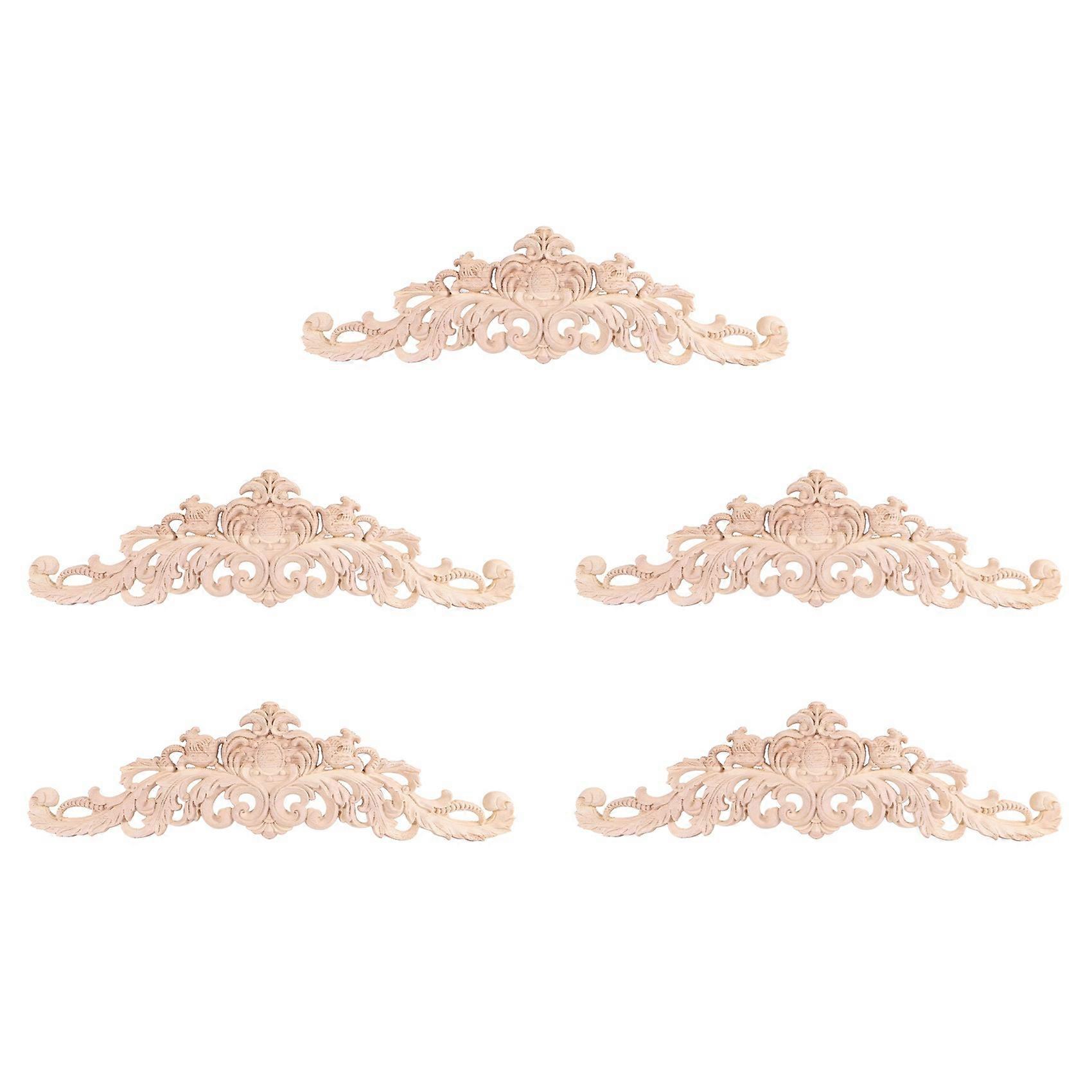 5X Carving Natural Wood Appliques for Furniture Cabinet Unpainted Wooden Mouldings Decal Vintage Home Decor 40x11x2Cm