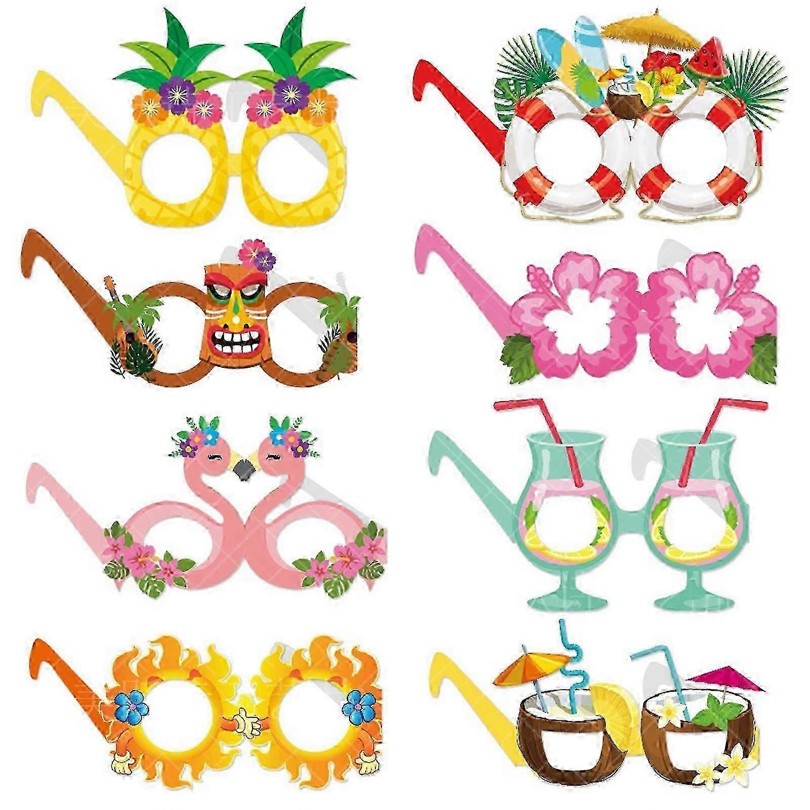 8Pcs Tropical Party Glasses Hawaiian Flamingo Pineapple Design Kids Summer Beach