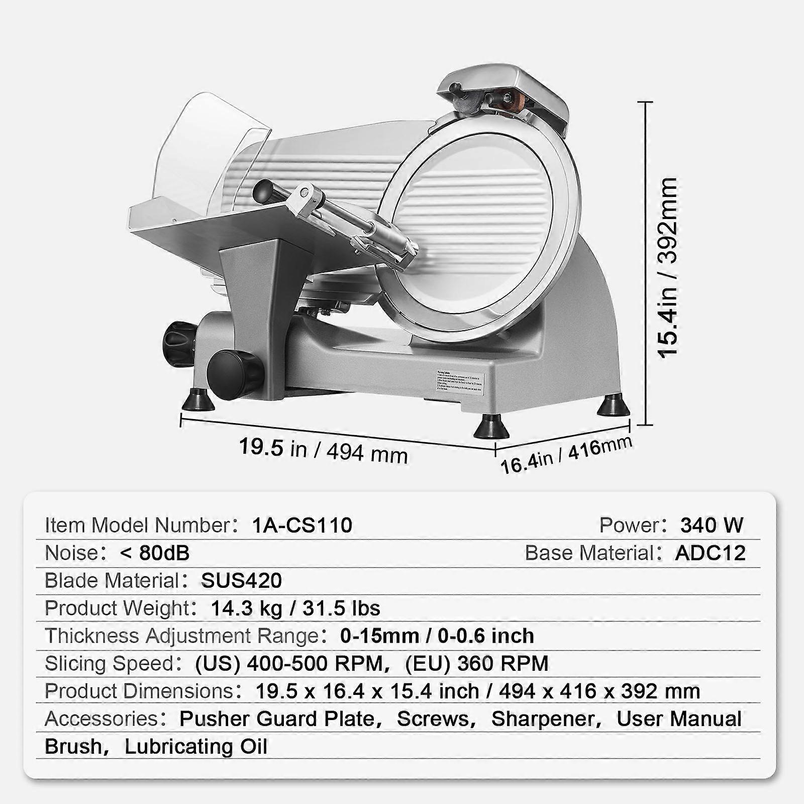 Meat Slicer 8/10inch Carbon Steel Blade Electric Deli Food Slicer Adjustable Thickness Home Cut Meat Cheese 10inch