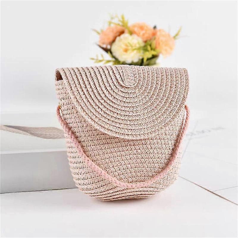 Flip children's Bag Cute Grass Woven Handbag Little Girl Crossbody Fashion Cute Zero Wallet Summer Beach Shoulder Bags
