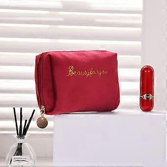 Women's Cosmetic Bag Zipper Velvet Letter Embroidery Solid Make Up Pouch for Cosmetics Toiletry Case Female Make Up Bags