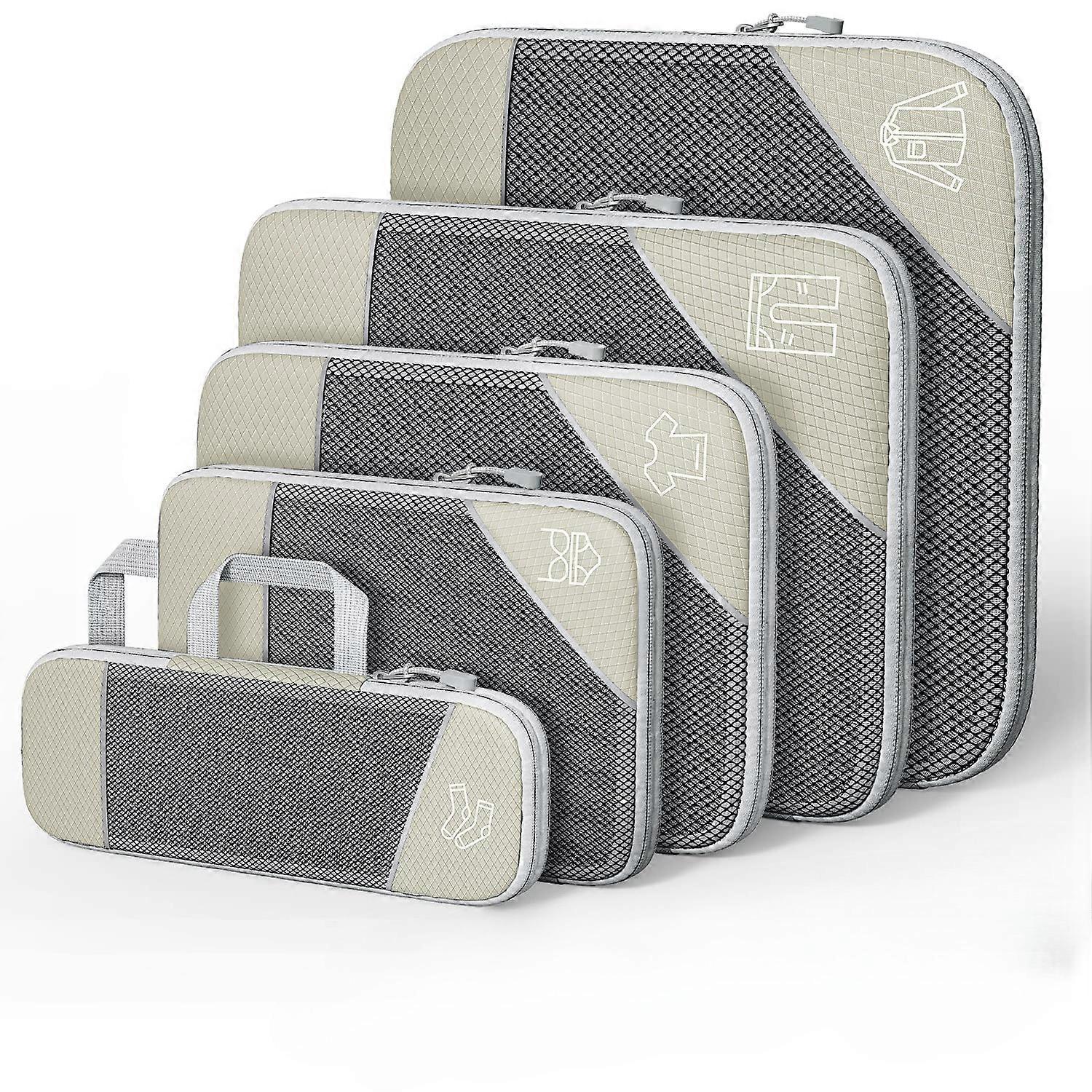 5PCS Compression Packing Cubes, Mesh Travel Packing Cubes for Suitcases, Lightweight Organizers Bag Set for Travel Essentials