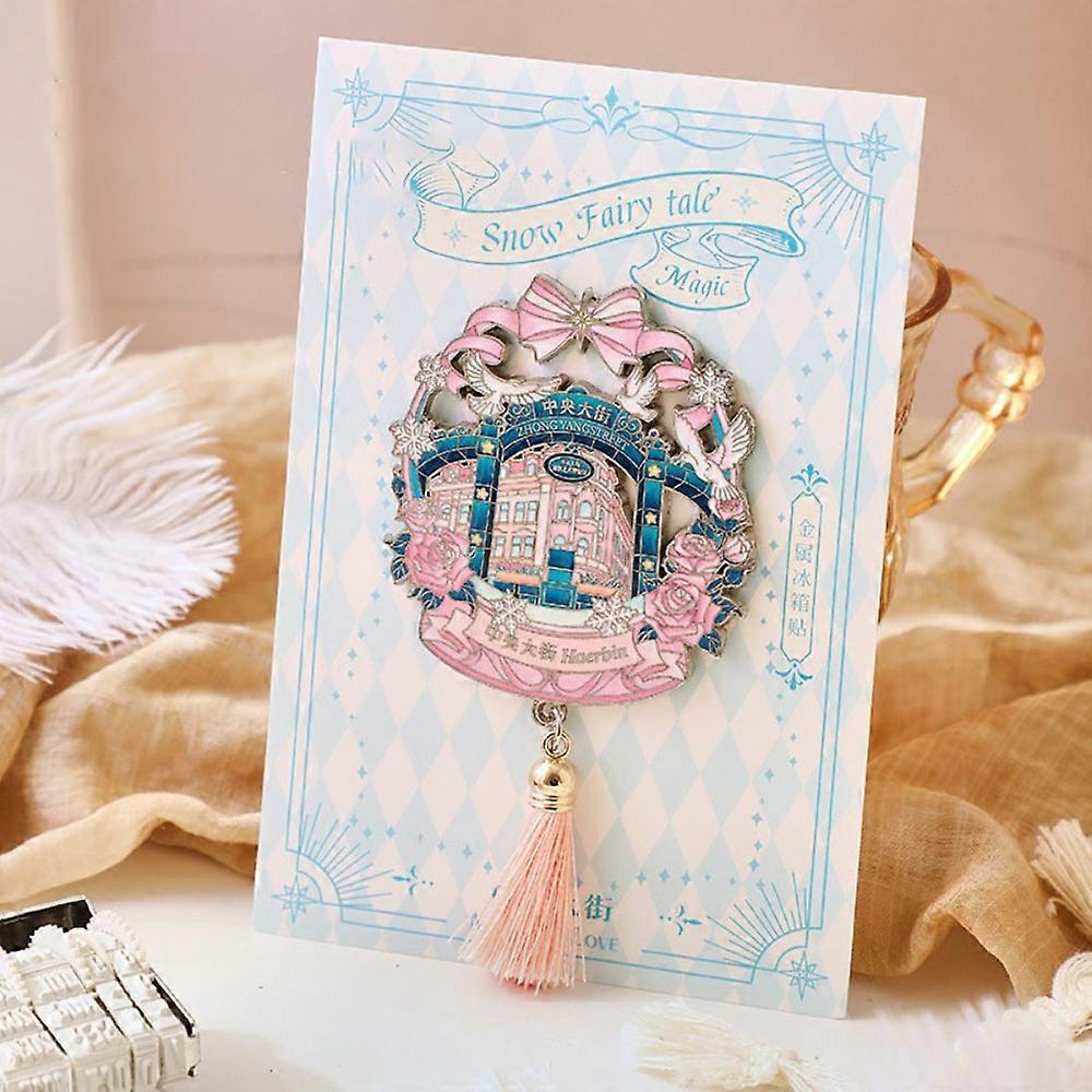 New Metal Fridge Magnet with Tassel Hollow Bookmark Landscape Magnetic Stickers Souvenirs Gifts