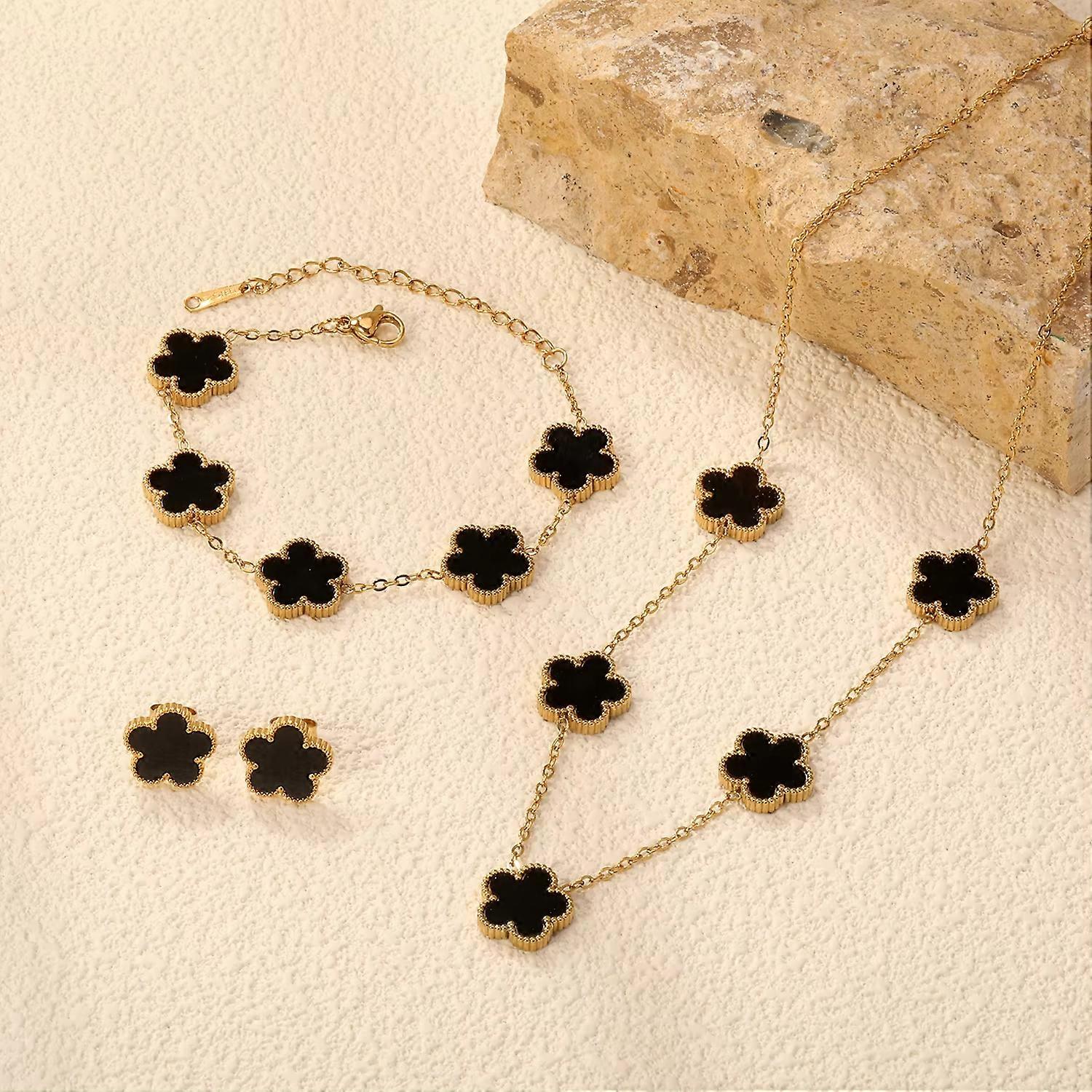 Fashion Flower Necklace Earrings Set Jewelry Women Stainless Steel White Shell Clover Bracelet Jewelry Accessories