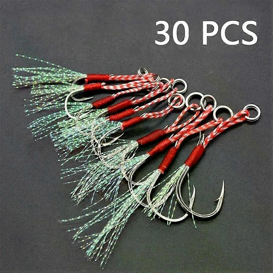 10/30/60Pcs Jigging Fishing Cast Jigs Assist Hook Barbed Single Jig Hooks Thread Feather Pesca High Carbon Steel Fishing Lure