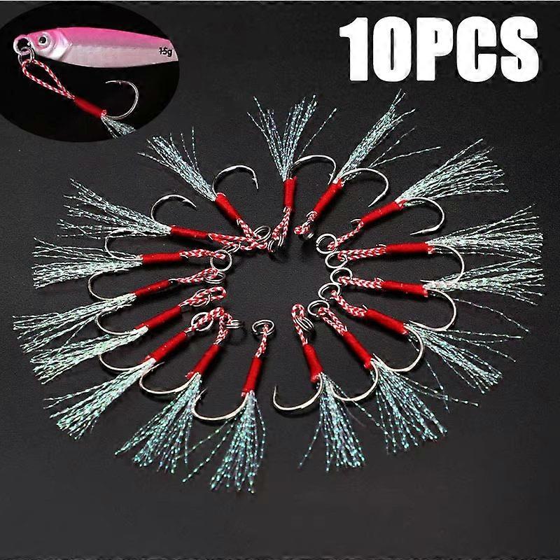 10-100Pcs Slow Jigging Fishing Cast Jigs Assist Hook Barbed Single Jig Hooks Thread Feather Pesca High Carbon Steel Fishing Lure