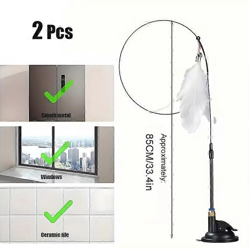 85cm Cat Teaser Wand Interactive Boredom Relief Toy with Suction Cup And Changeable Feathers for Kittens And Cats