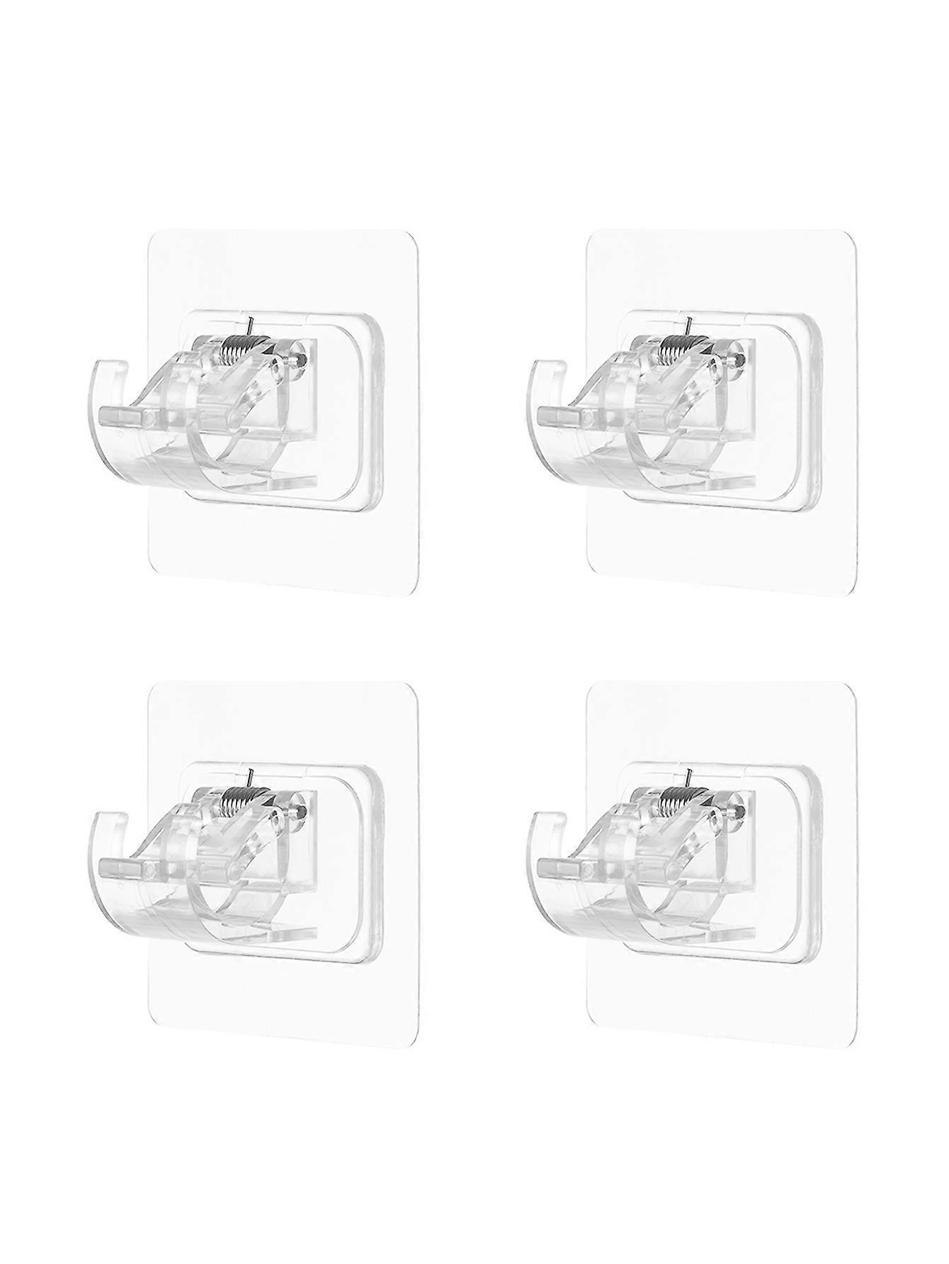 Non Perforated Adhesive Curtain Rod Clamp Transparent Acrylic Crossbar Door Curtain Hanging Clamp Hook Bracket Telescopic