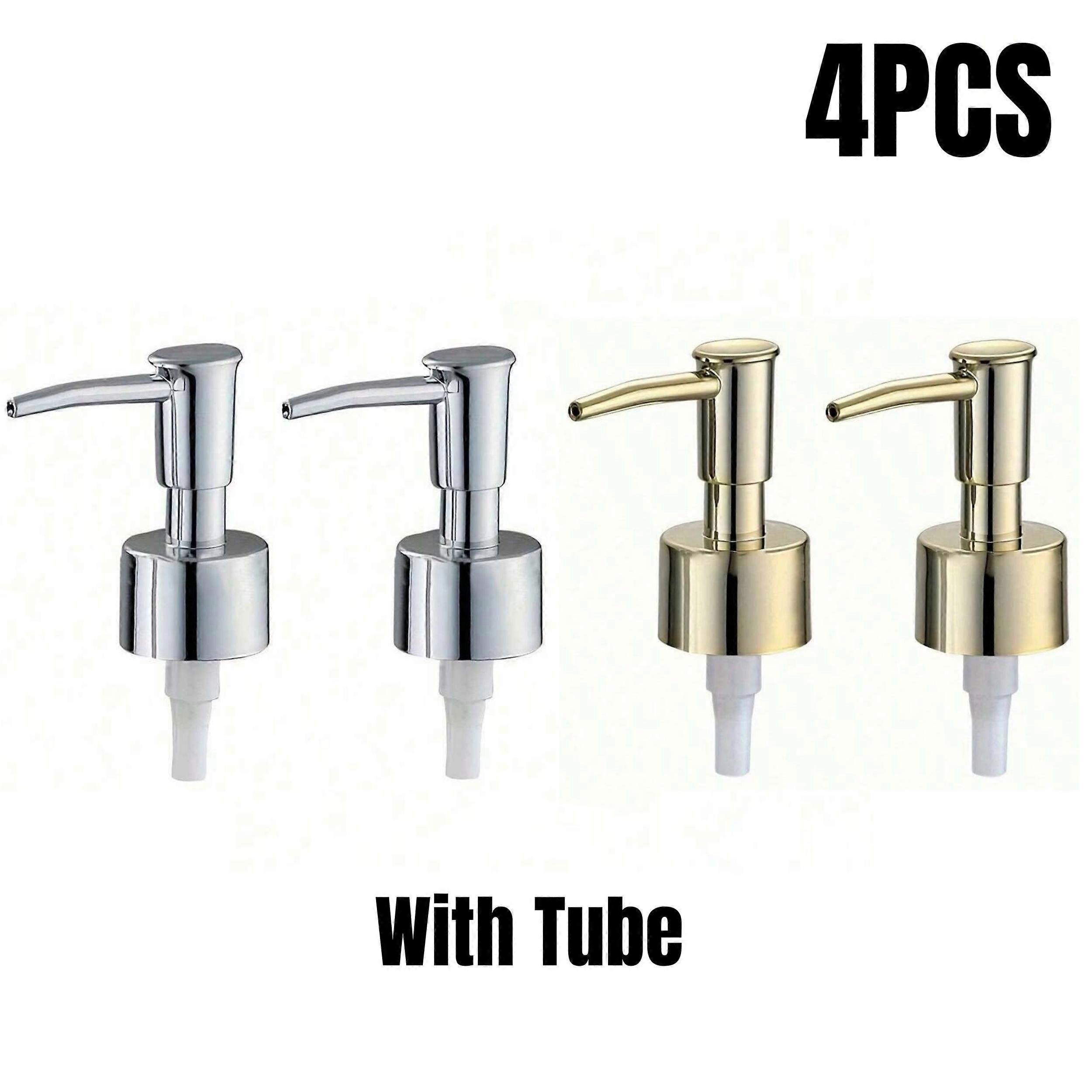 [DETAIL]<br>Features:<br>1. Sturdy spring pump head makes dispensing smooth and easy.<br>2. Apply to your bottle and soap and lotion dispenser pump.<br>3. A soft sealing gasket is laminated under the soap pump cover to prevent leakage.<br>4.Our soap pumps are carefully ground and polished to have a smooth surface, easy to press, and a uniform and smooth discharge method, which avoids waste and ensures usage and efficiency.<br>5.Ideal for both kitchen countertops and bathroom sinks, this pump head is a versatile solution to elevate your hygiene routine throughout your home.<br>Specification:<br>Material: Plastic<br>Color: Silver, Gold<br>Product use: Makeup remover, shampoo, bath and washing products.<br>Quantity: 1/2/4PCS<br>Package Included:<br>List: 1 x Pump, 1 x Tube<br>Note:<br>1. Due to various factors such as monitor brightness and light brightness, the actual color of the product may be slightly different from the picture displayed on the website.<br>2. Please allow for slight manual measurement bias in the data.<br><br>[ATTRIBUTES]<br>- Is Smart Device: No<br>- High-concerned chemical: None<br>- Material: Plastic<br>- Is Smart Device: No<br>- High-concerned chemical: None<br>- Material: Plastic<br>- Origin: Mainland China<br>- Model Number: Liquid Lotion Dispenser Head Replacement<br>- Type: Liquid Soap Dispenser Press Head<br>- Feature: Press Pump Head<br>- Color: Gold,Silver