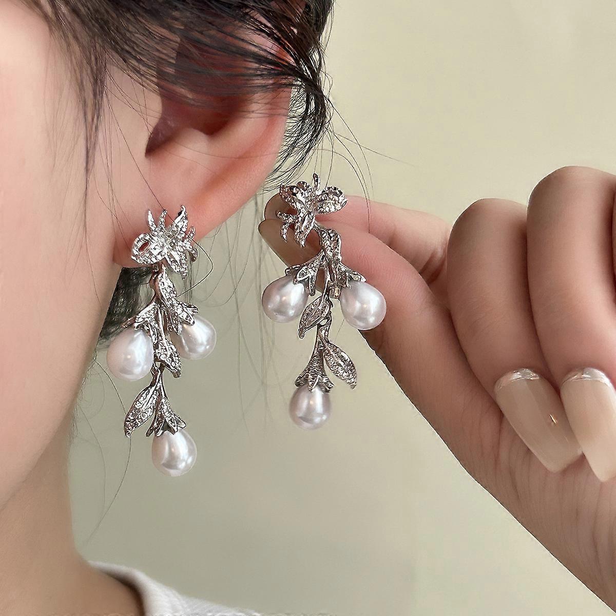 Trendy Stylish Silver Dangle Earrings Pearl Design Match Daily Outfits Y2k Party Accessories Fashionable Stuff
