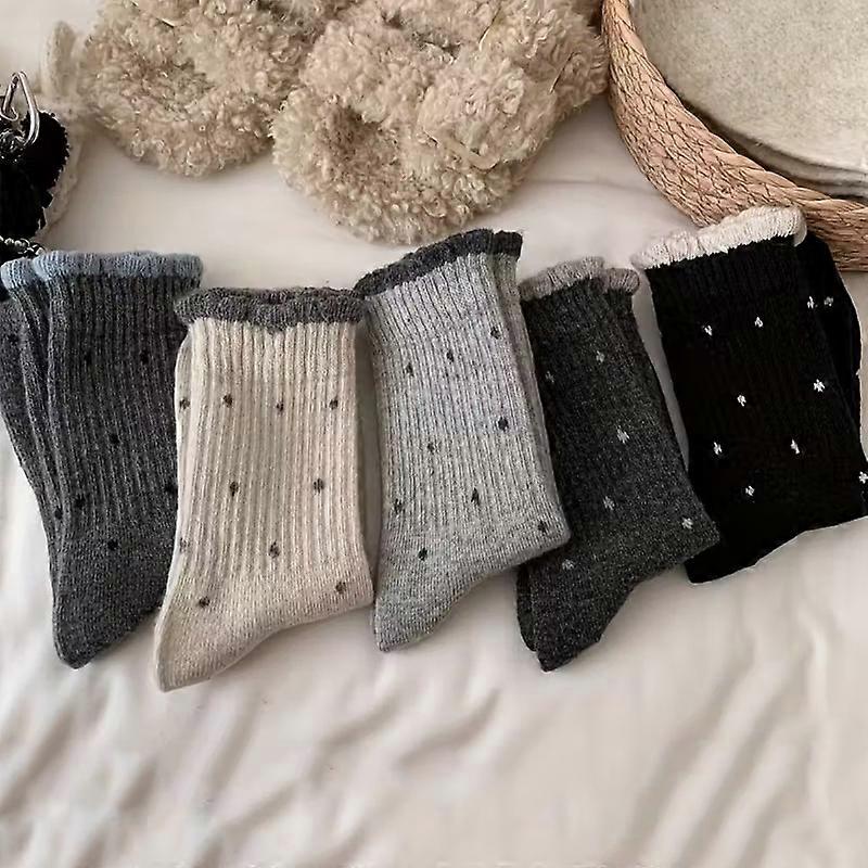5 Pairs Women's Autumn/Winter Polka Dot Mid-Calf Socks, Trendy Versatile Soft Lace Vintage Dopamine Style Socks
