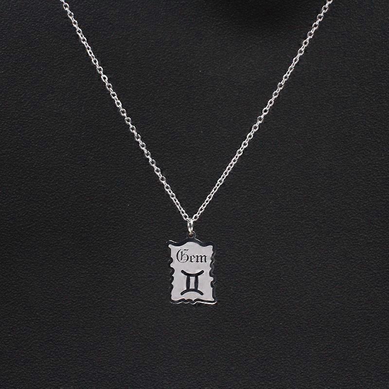 1pc Retro Zodiac Titanium Steel Pendant Necklace Vintage Glass Accents Adjustable Chain for Women Gift Jewelry
