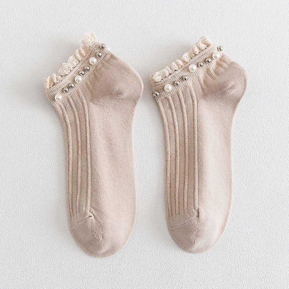 1Pair Elastic Women Ankle Socks Breathable with Pearl Lace Ruffle Socks preppy Style Candy Color Princess Dress Socks