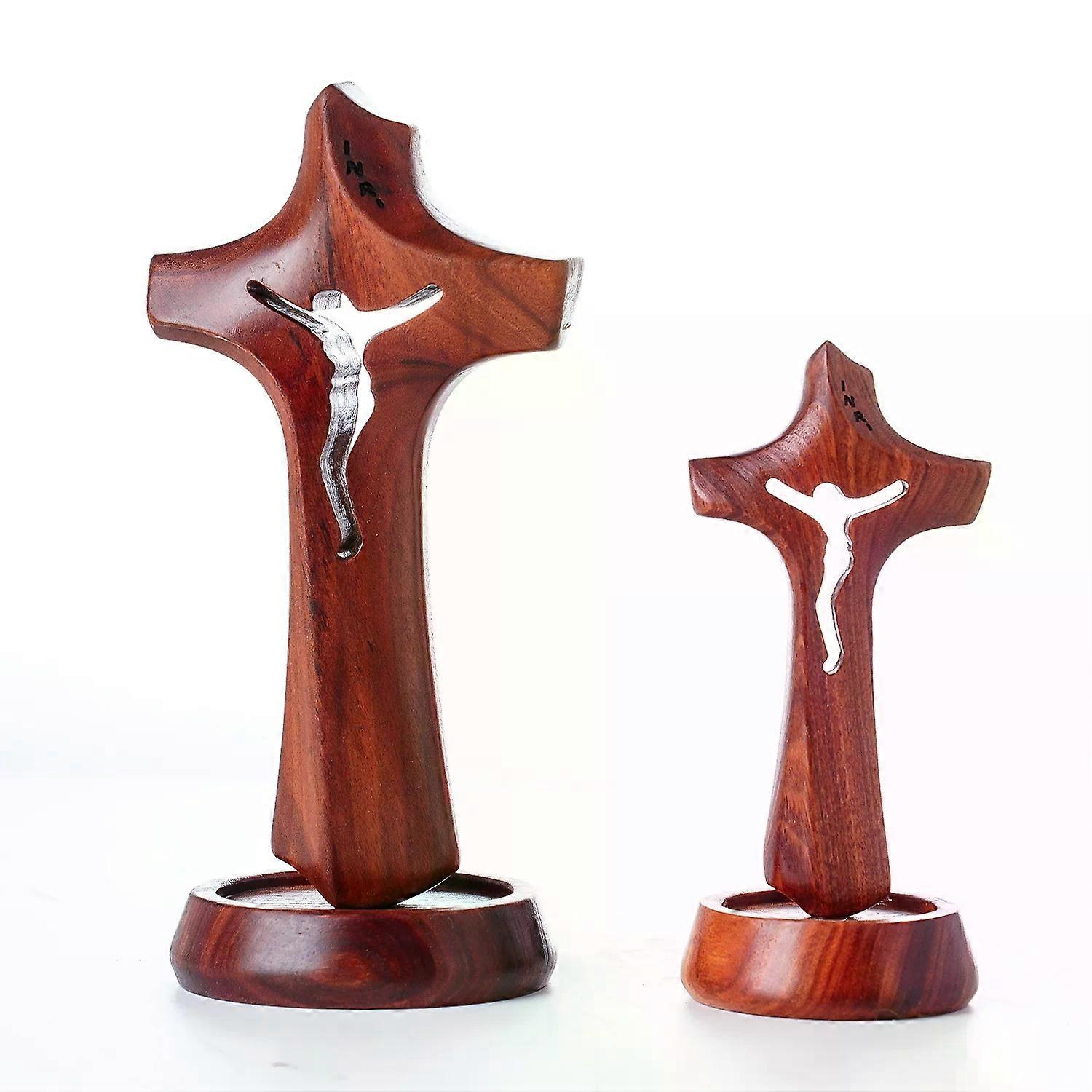 Material : Resin Craft with base, this Christian crucifix combines religious symbolism and artisanal craftsmanships for elegant homes altars or gift giving occasion. Feature a crosses design with quality waxes finish, the tabletop ornament natural grains and scriptures engravings for nontoxic spiritual display. for church clergy, Christian family, and woodcrafts collectors seek meaningful religious artifact for sacramental ceremonies or faith styles interior designs. Enhances sacred ambiances on church lecterns, home prayer corner, or seasonal displays during Easters/Christmas, while serving as spiritual decors for baptisms or weddings. The base ensures stability for daily devotionals, with timelessly designs make traditional worship aesthetic and modern minimalists home decors preferences.