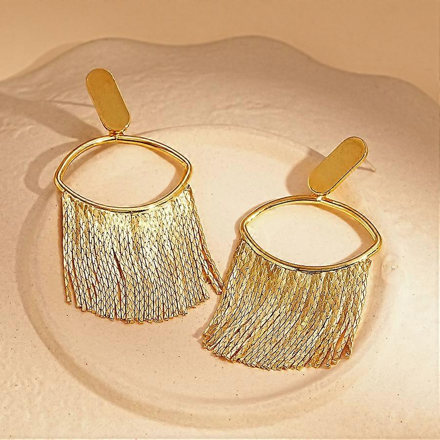 1 Pair of Trendy Stylish Golden Dangle Earrings Chain Tassel Design Match Daily Outfits Party Accessories Fashionable Stuff