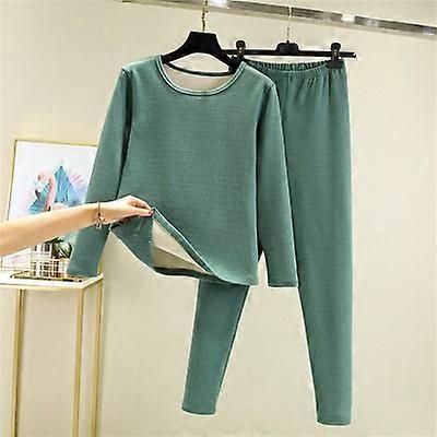 Thiened Fce Women's Warmth Set Inner Wear Long Sve round Ne Single Layer Long Pants Thermal Fiber Home Clothes