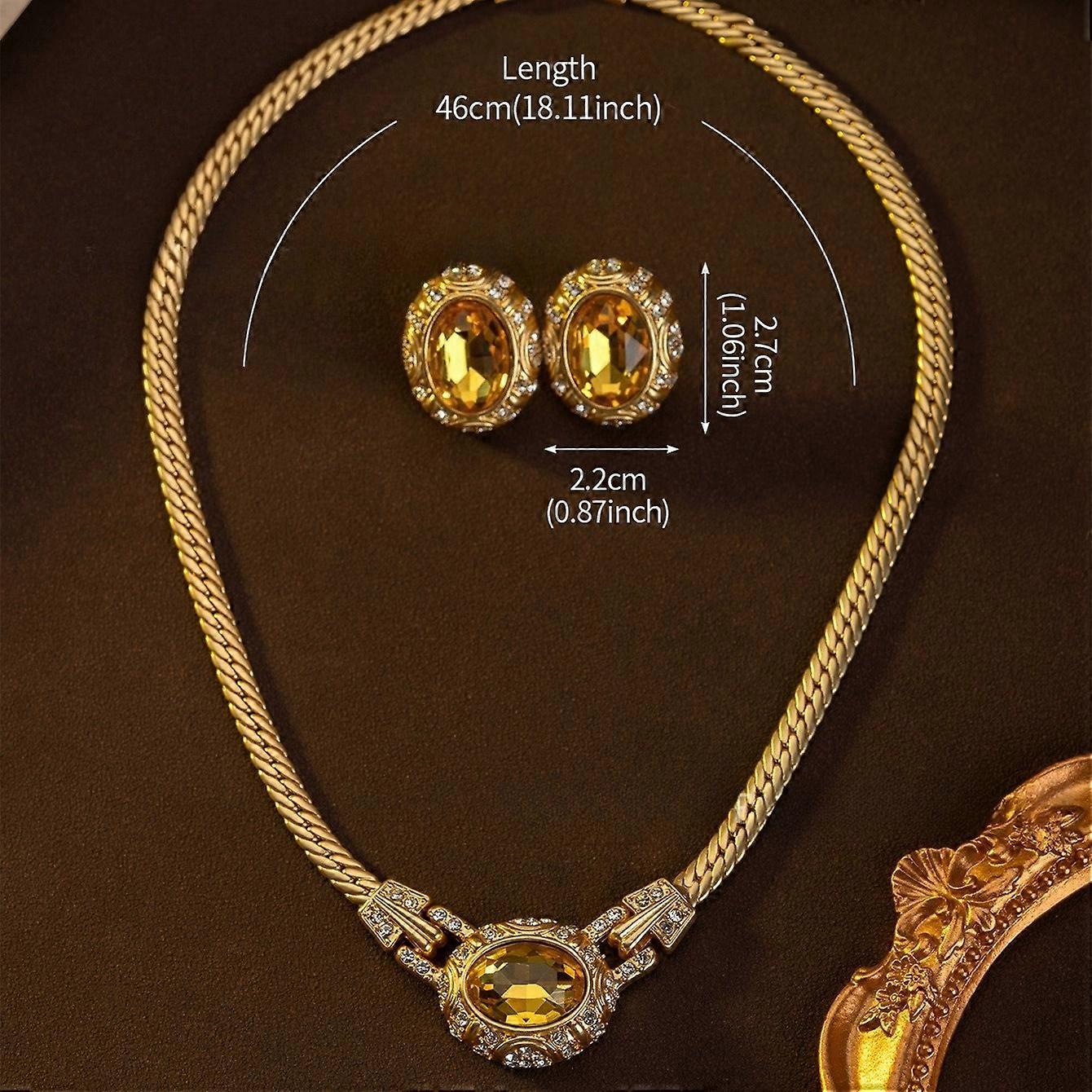 3pcs Elegant Vintage Jewelry Set for Women Elliptical Geometry Necklace Shiny Crystal Choker Bridal Wedding Earrings Party