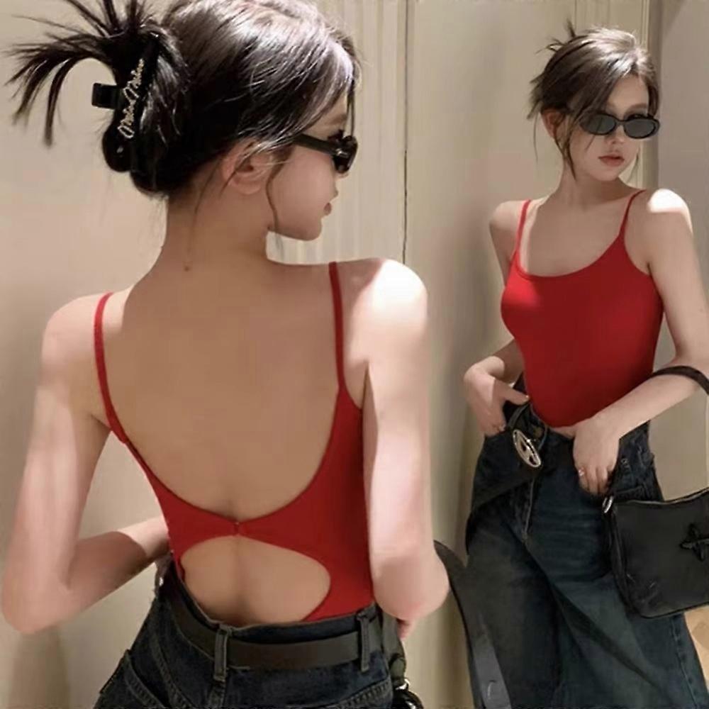 Fashion Hollow Out Open-Back Tank Top with Sleek Padded Breathable Sleeveless Top Women's Inner Wear