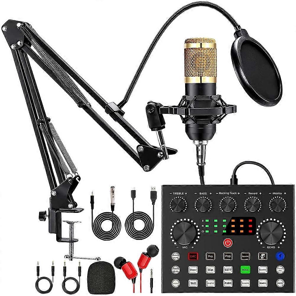 Podcast Equipment Bundle with BM800 Microphone and V8 Sound Card Podcast Equipment Metal Shock Mount Perfect for Phone PC DJ