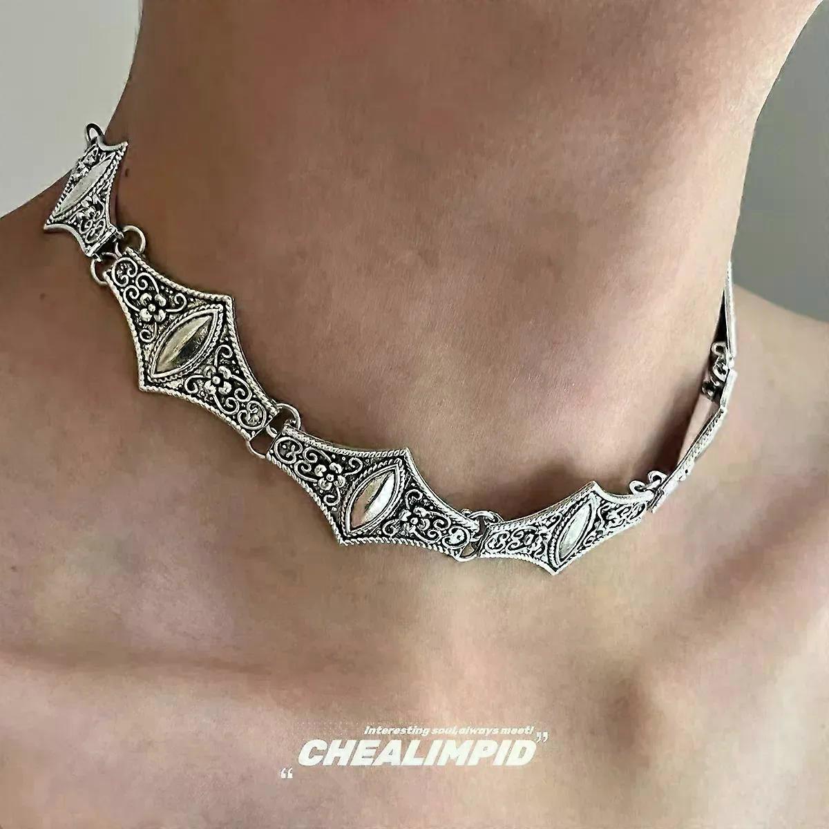 Heavy Industry Court Style Metal Pattern Choker Necklace Men s Vintage Design Sensation Elegance Neck Accessory
