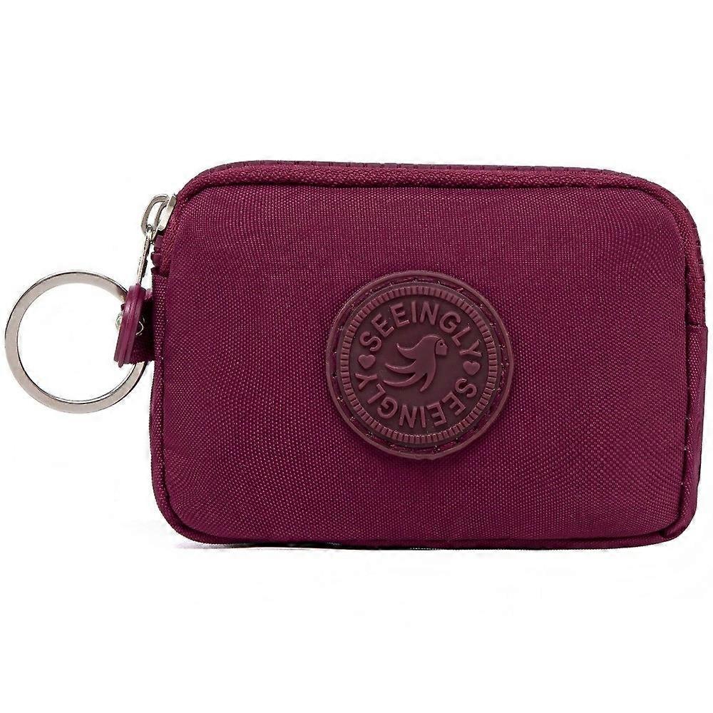 New Double Layer Women Wallet with Keychain Waterproof Credit Card Holder Nylon Solid Color Coin Purse Outdoor