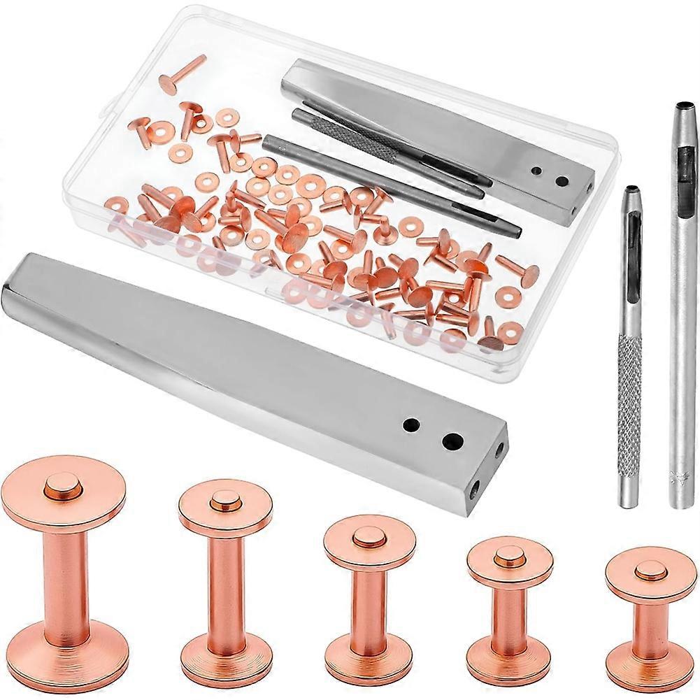 103 PCS Copper Rivets and Burrs, Leather Rivets Fastener Install Setting Tool, Copper Rivet and Burr Washers for Leather