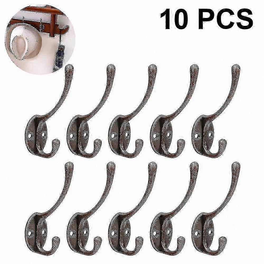 10 Pack Rustic Coat Hooks, Heavy Duty Wall Mounted Double Hooks in Black, Silver, Red, Bronze