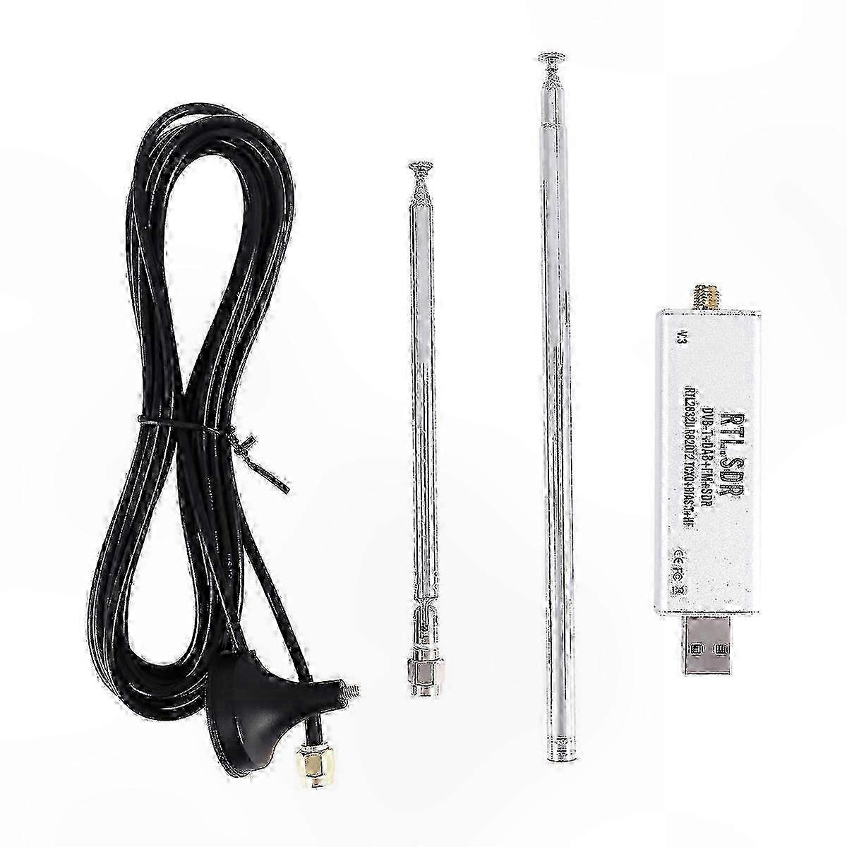 SDR Receiver RTL2832U + R820T2 Chip with 1PPM TCXO, ADS-B Capable, Frequency Range 0.1 MHz–1.7 GHz This software-defined radio receiver converts signals received by the antenna into digital data and transmits them to computers, Android devices, and other compatible devices via USB interface. Compatible software processes the demodulated signal, displays the frequency spectrum, and enables adjustable reception bandwidth, signal recording, saving, and playback. Supports reception across 100 kHz–1.7 GHz and demodulation modes including AM, FM (NFM, WFM), CW, DSB, LSB, and USB. Suitable for shortwave single-sideband communications, FM broadcast, aviation band monitoring, ADS-B decoding, AIS signal reception, and meteor scatter observation. Features: - Built-in 1 ppm temperature-compensated crystal oscillator (TCXO) for improved frequency stability and accuracy - Low temperature drift (2 ppm initial deviation, 1 ppm over temperature range) - Enhanced thermal management for stable operation - RTL2832U + R820T2 chipset: R820T2 tuner offers improved sensitivity, lower noise floor, and higher signal-to-noise ratio compared to R820T; optimized performance up to ~1.5 GHz - Q-channel utilization on RTL2832U enables direct sampling reception from 100 kHz to 24 MHz - Full-band coverage from 100 kHz to 1.7 GHz Compatible with Windows XP/7/8/10, macOS, and Android. Specifications: - Type: SDR Receiver with Antenna - Dimensions: 71 × 43 × 19 mm (2.80 × 1.69 × 0.75 in) - Weight: 34 g - Color: Silver - Housing Material: Metal Package Includes: - 1 × RTL-SDR Receiver - 1 × Antenna Note: Color appearance may vary slightly due to lighting conditions and screen settings. Slight dimensional variations may occur due to manual measurement.