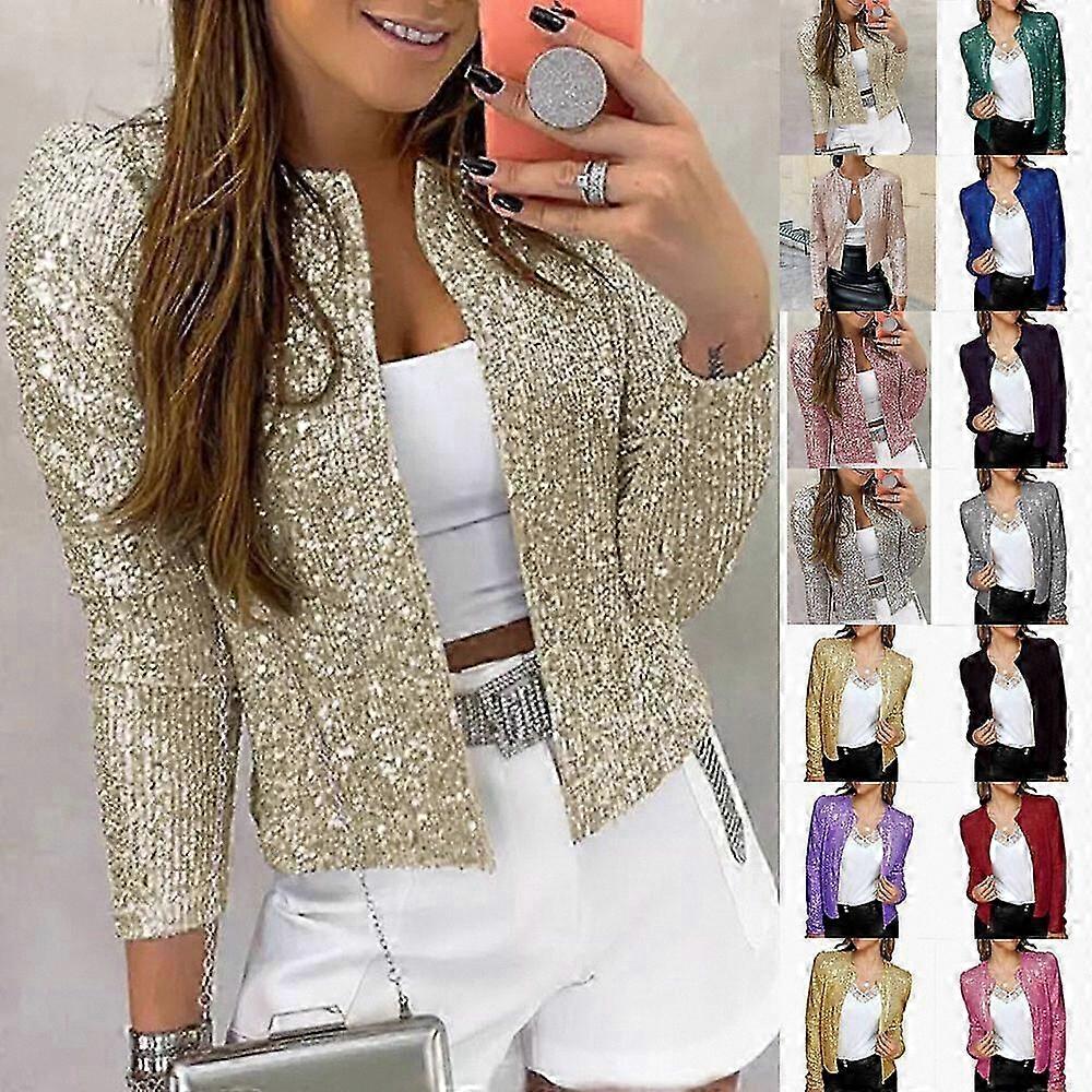 Women's Sparkly Sequins Christmas Party Coat Jacket Blazer Tops