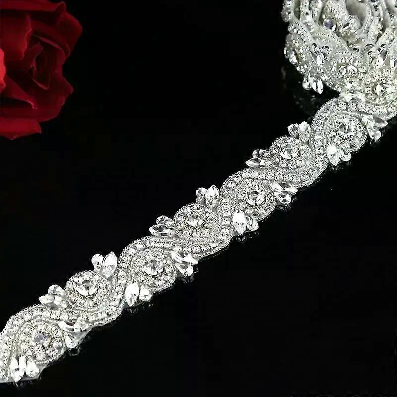 (Rose gold Gold Silver) 177*15 in Handmade Wedding Bridal Applique Crystal Rhinestone Applique Trimming