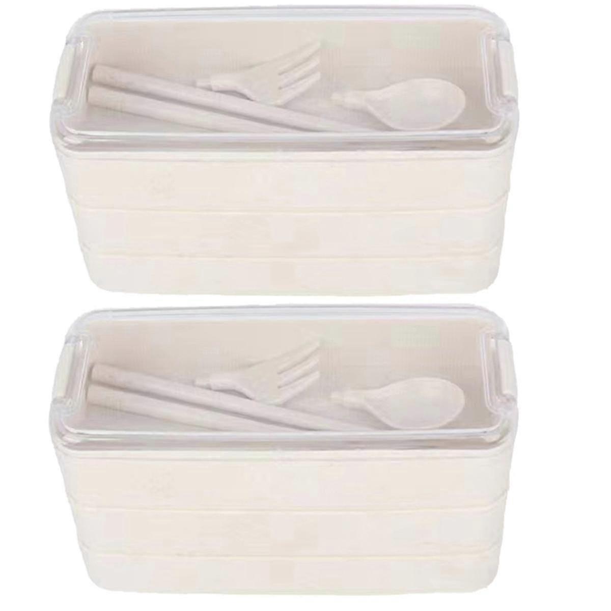 Outdoor Microwaveable Lunch Box with Fork & Spoon - Creamy White for Outdoor Use