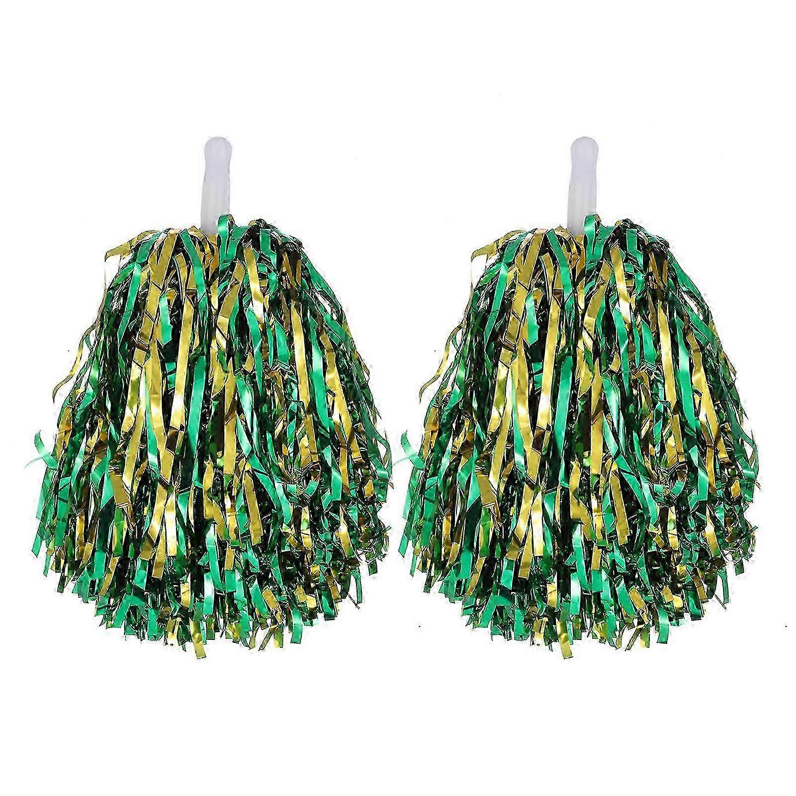 New 2-Pack Cheerleader Pom Poms with Metallic Foil & Handle for Sports Competitions & Celebrations