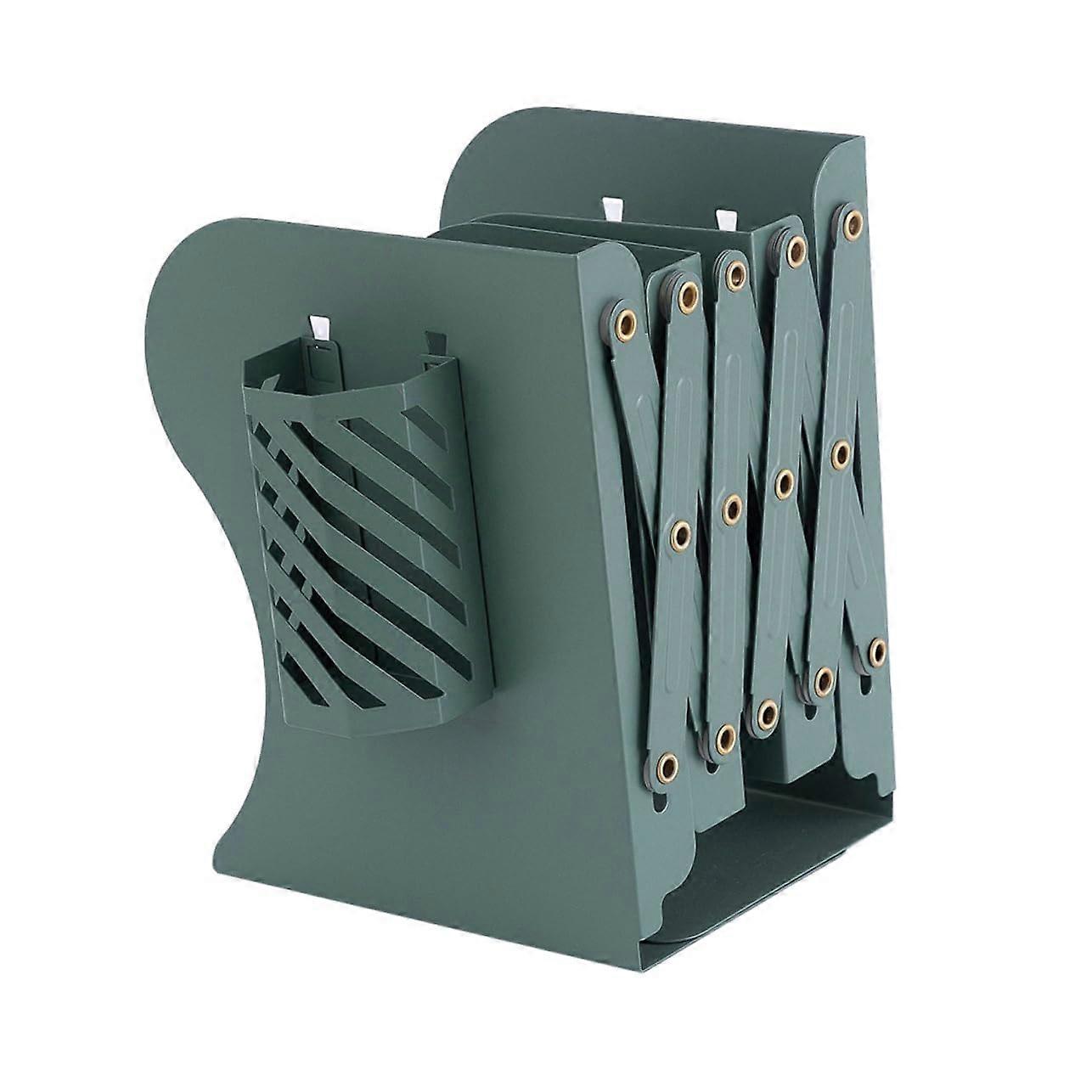 Adjustable Metal Book Stand with Pen Holder, Foldable Cartoon Bookends for Desk and Study in BlueGreen
