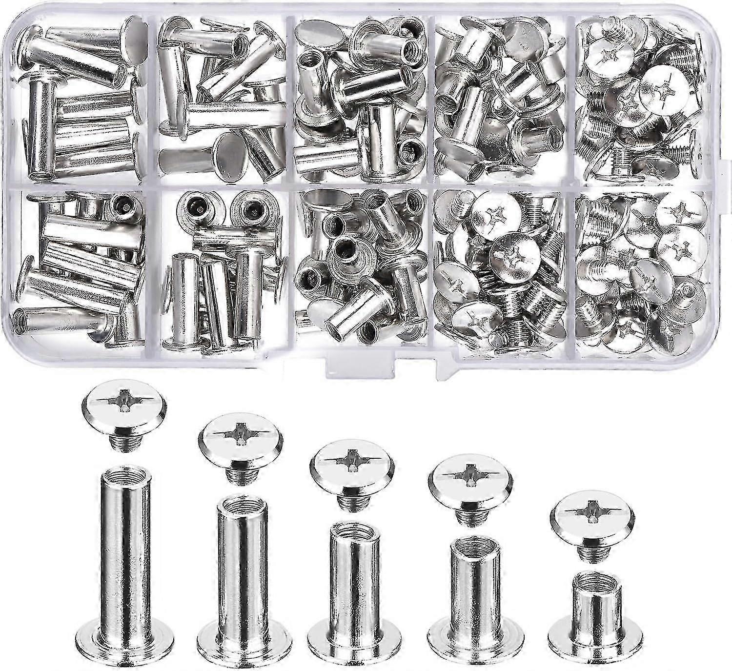 80 Pcs Chicago Screws Assortment Kit, 5 Sizes, for Leather Craft DIY