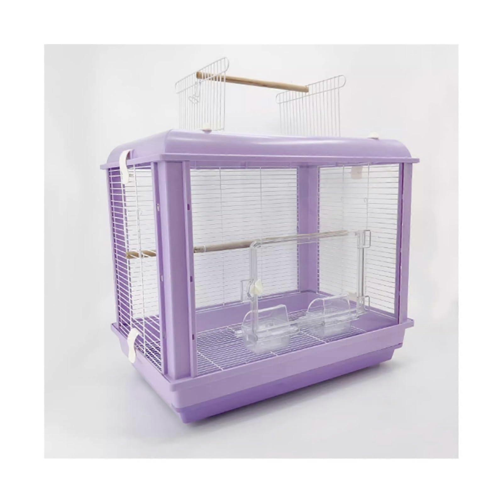 Large Acrylic Parrot Cage with 360° Panoramic View and 180° Flip Lid, Purple