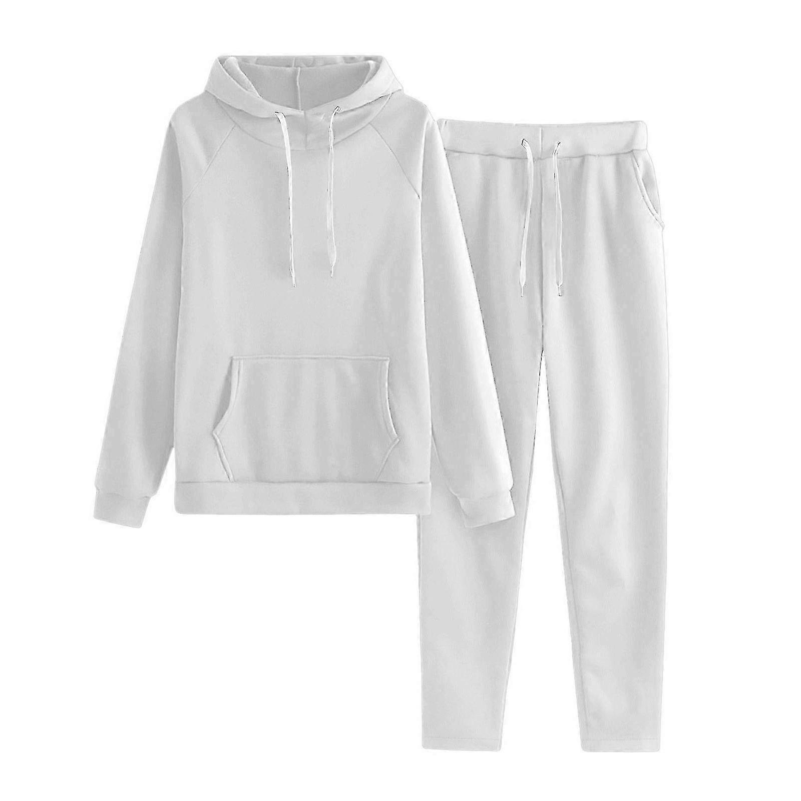 Women's Raglan Sleeve Sweatshirt with Soft Stretchy Polyester Pants Set for Yoga, Gym & Casual Wear - White XL Lounge Pants Set