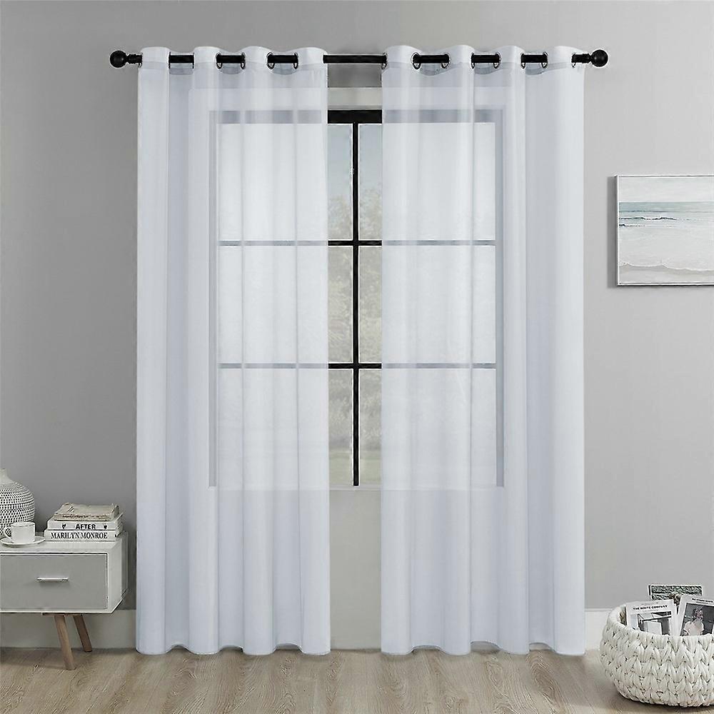 1Pc 100 x 200cm Semi Sheer Curtain Eyelet Top Solid Color Curtain for Living Room Balcony Window