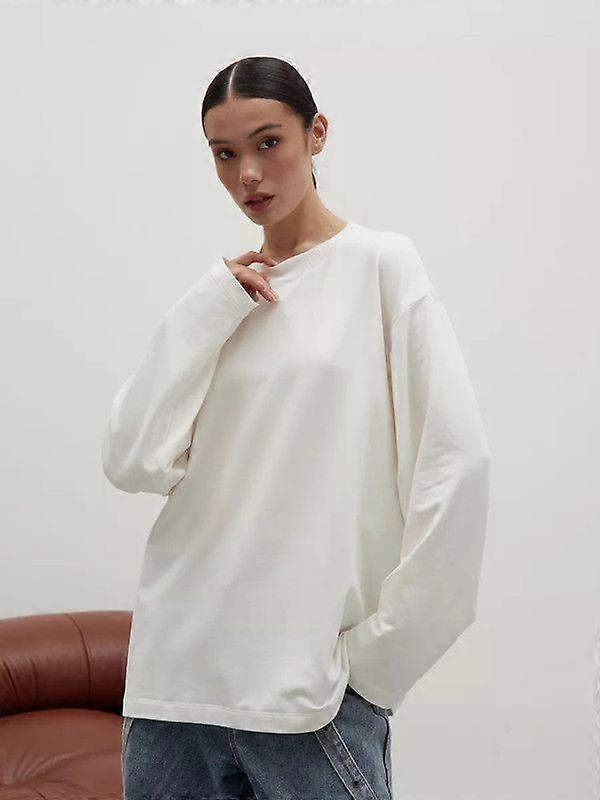 Solid Color Long-Sleeve T-Shirt for Women - Loose-Fit Casual Crew Neck Top - High Quality