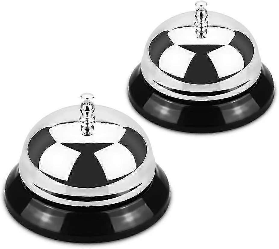 Call Bell, 2 Pack 3.35 Inch Silver Service Bell for Porter Kitchen Restaurant Bar Classic Concierge Hotel, Loud Clear Ringing, Non - Slip Base