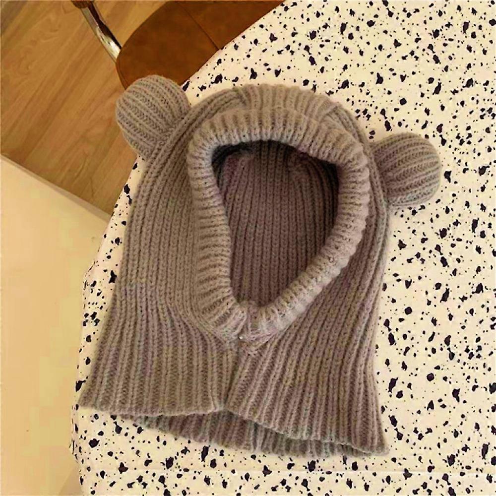 Casual Bear Ear Outdoor Knitted Hat Hooded Thickened Snow Beanies Cap Windproof Winter Balaclava for Women Girls